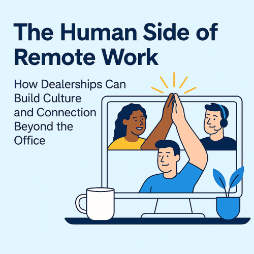 How Dealerships Can Build Culture and Connection Beyond the Office The Human Side of Remote Work. As remote work becomes an integral part of modern dealership operations, maintaining a strong company culture and sense of connection among remote staff is more important than ever. From compliance officers to sales support teams, dealership leaders are learning […]